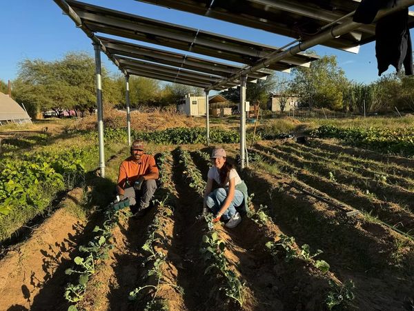 What makes this agrivoltaics project exceptional is its combination of real-world application, scientific research, and educational value. The team is collaborating with the USDA Arid Land Research Center to monitor plant yields, temperature impact, and other environmental benefits. Their most recent study—tracking 120 pepper plants—showed that crops under the solar panels produced 4.5 times more than those in control beds during the extreme heat of an Arizona summer. The data collected here will support a peer-reviewed paper and help farmers across the Southwest adopt climate-smart agriculture. A second agrivoltaics system at Gardens of Tomorrow, supported by Tiger Mountain Foundation, FOREnergy, and Titan Solar, powers farm tools and supports food distribution through markets that serve local communities. Both installations offer tangible proof that solar and agriculture can work together, even in some of the hottest, most challenging urban growing environments in the country.